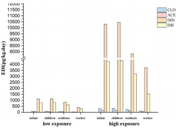 图注:不同年龄组暴露于新烟碱类杀虫剂(NNIs)的每日摄入量(EDI)